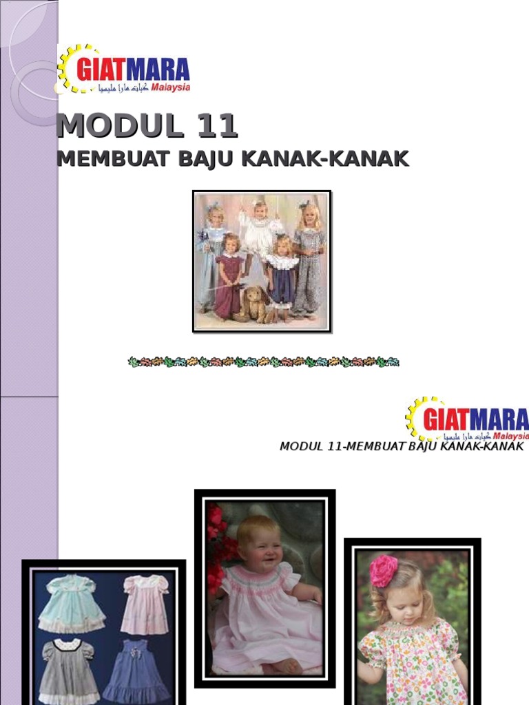 10 jenis fesyen pakaian anak dan kanak-kanak. Setelah pola selesai dibuat selanjutnya aplikasikan pada kain. Mesti dijalankan di premis sekolah atau pusat untuk memenuhi keperluan perkembangan kanak-kanak yang berumur sekurang-kurangnya tiga tahun dan staf yang mempunyai kelayakan untuk mengajar kanak-kanak peringkat umur muda.